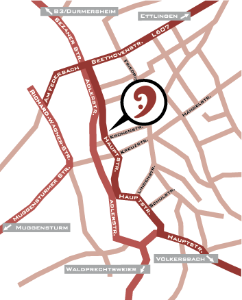 Mit dem Auto: Kostenlose Parkplätze finden Sie direkt vor dem Haus. Download LageplanMit dem Bus: Bus 103, 104 oder 110. Haltestellen: Adlerstraße / Kreuzstraße.